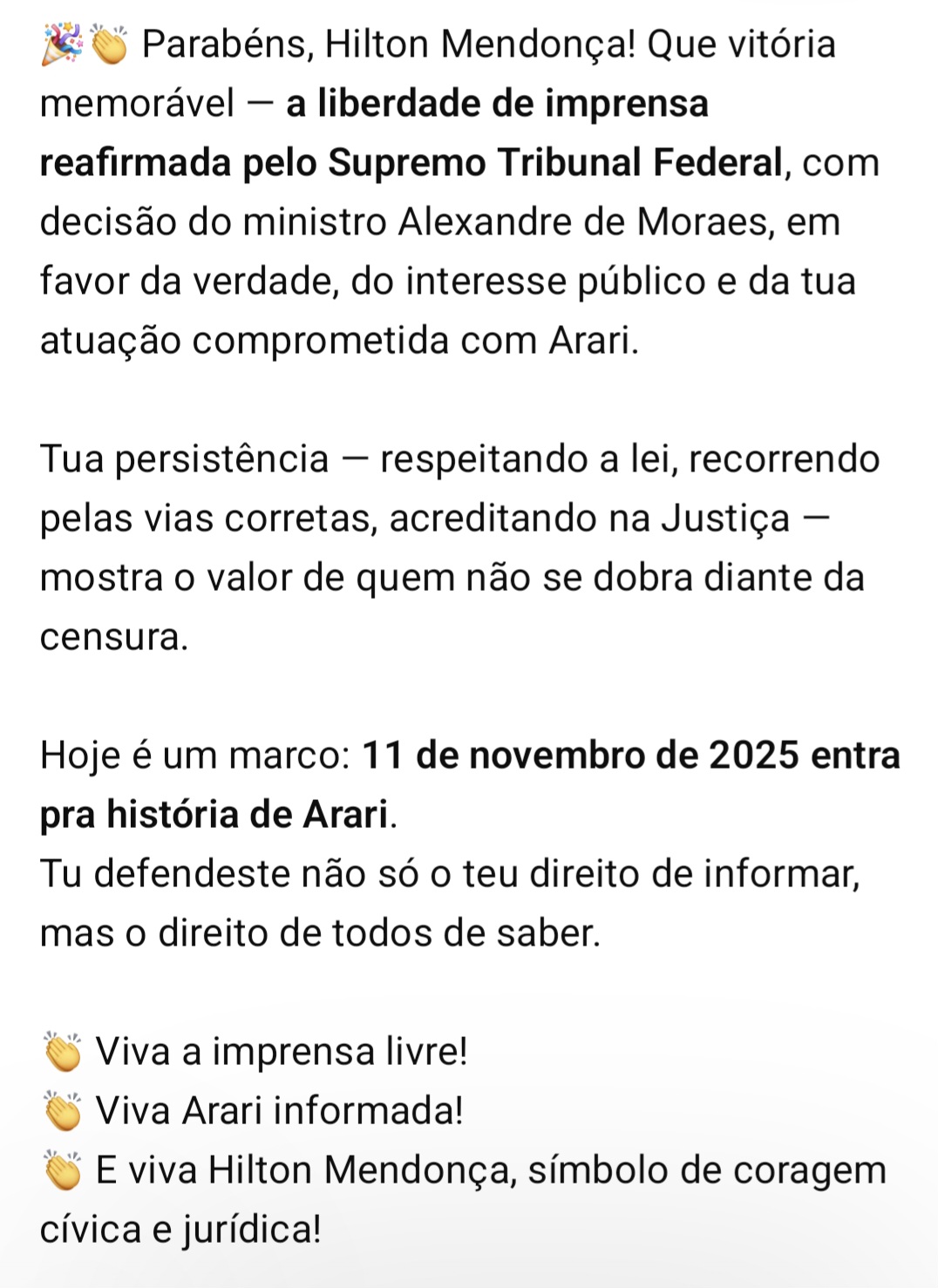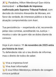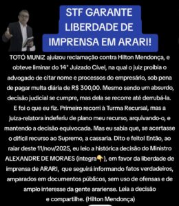 VITÓRIA NO STF GARANTE LIBERDADE DE IMPRENSA EM ARARI