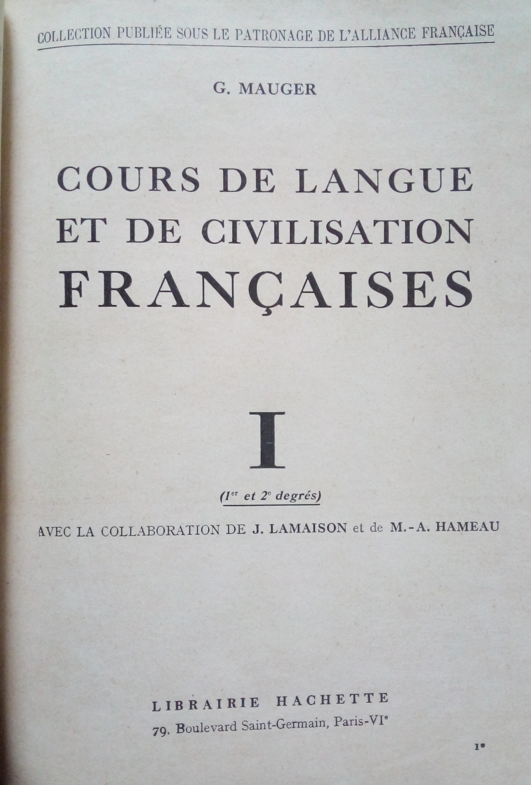 2)G. MAUGERCours de Langue et de civilisation Françaises – VOLUME 1