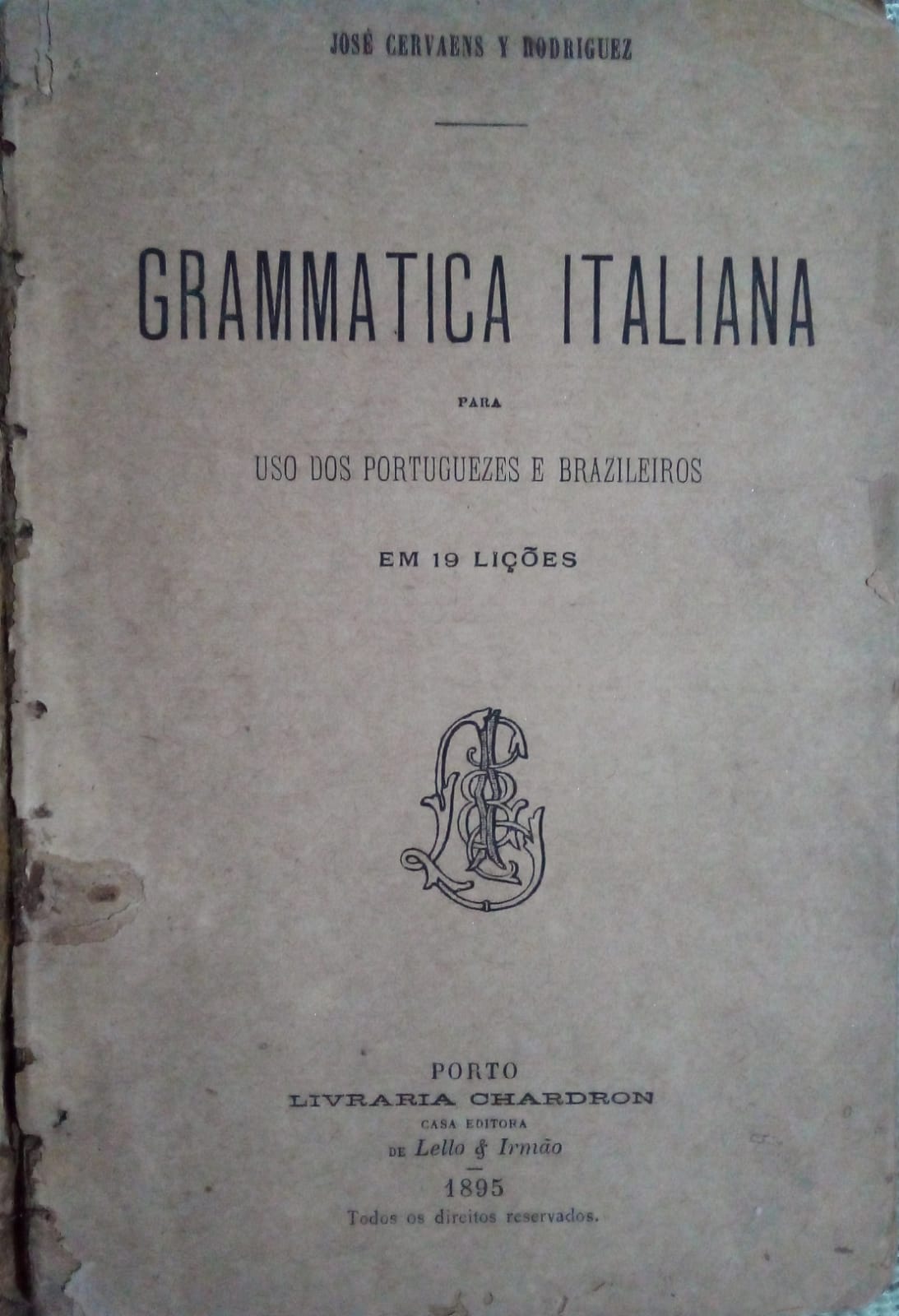 22-(Italiano) JOSÉ CERVAENS RODRIGUEZGramática Italiana – Edição de 1895 (Livro frágil…)