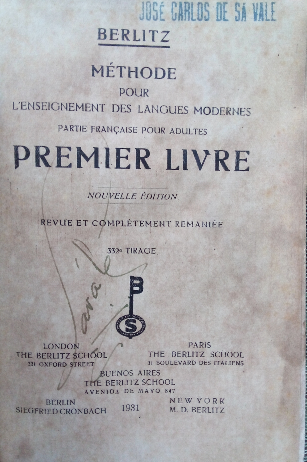 8)BERLITZ – 1931PREMIER LIVRE – Partie Française pour Adultes